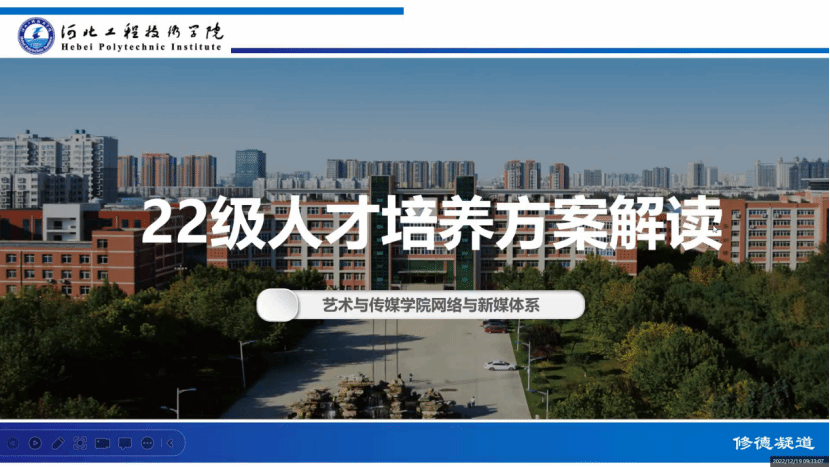 20日,数字媒体艺术系主任郝安然对2022级数字媒体艺术专业人才培养方案进行讲解,两系教师针对人才培养的专业性进行交流研讨,共同论证方案的科学性及合理性。