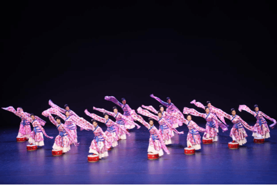 第二篇章四情常将少数民族一家亲的民族大爱用舞蹈动作展现地淋漓尽致,不论是胶州秧歌还是安徽花灯鼓,是青藏高原上欢快愉悦的藏族舞蹈,还是茫茫草原中风格独特的蒙古顶碗,亦或是注重气息吐纳的朝鲜舞双刀,还有民俗气息浓厚的山东鼓子秧歌,都在向舞台下的人们传递着“多元并包、兼容并蓄”的民族团结之意。