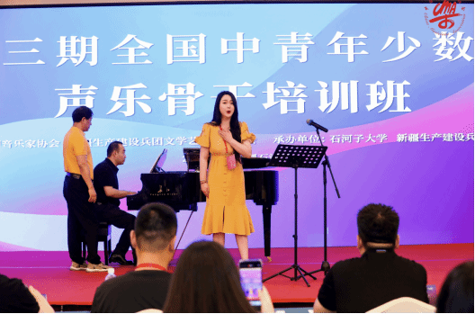 开班仪式上,来自音乐界的多位重量级嘉宾莅临现场,包括中国音乐家协会分党组书记、驻会副主席、秘书长韩新安,中国音乐家协会分党组成员、副秘书长、一级巡视员王宏,以及兵团党委宣传部副部长、兵团文联党组书记、主席潘峰勤等领导。他们共同见证了这一旨在培养少数民族声乐人才的重要时刻。