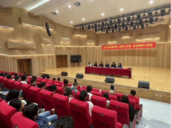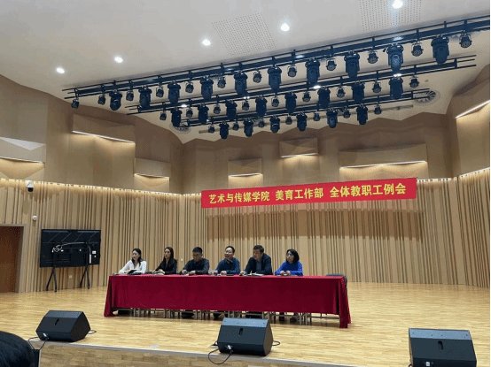 2023年10月8日,艺术与传媒学院在音乐厅举行全体教职工例会,艺术与传媒学院院长陈辉、副院长李罡、张会改、付华轩及全体教职工参与此次会议,办公室主任孟令杉主持此次会议。