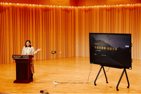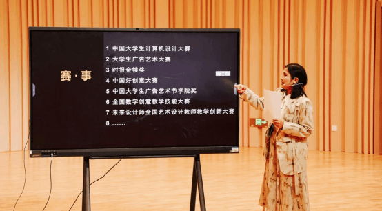 会上张婧祎老师主要从中国大学生计算机设计大赛、大学生广告艺术大赛、时报金犊奖、中国好创意大赛、中国大学生广告艺术节学院奖等8项主要赛事进行往期获奖作品案例赏析,从参赛作品提交要求,跨学科融合筹备比赛,调动参赛学生热情等方面进行讲解,使现场参会教师对于可参加赛事性质有了深入细致的了解。与此同时,张婧祎老师提到,全国数字创意教学技能大赛与未来设计师全国艺术设计教师教学创新大赛有利于提升教师教学技能水平,从比赛的教案要求、视频录制要求等方面进行了深入解读。对视频教学内容的选择、教学场景的布置以及信息化手段使用等方面做了详细讲解。