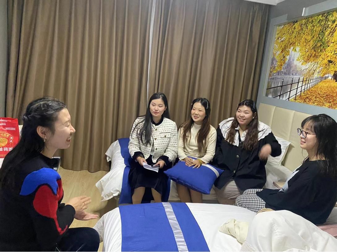 晚上带队老师到学生宿舍走访学生,了解学生今天的学习和生活状态,对学生反馈的问题,和带队老师们互相沟通,保证师生有良好的考察参观体验。总之,通过今天的艺术考察,学生们对天津的文化艺术有了更深入的了解,并表示之前在课堂上看到的图片资料,今天看到了实物,做到了实践与理论结合。