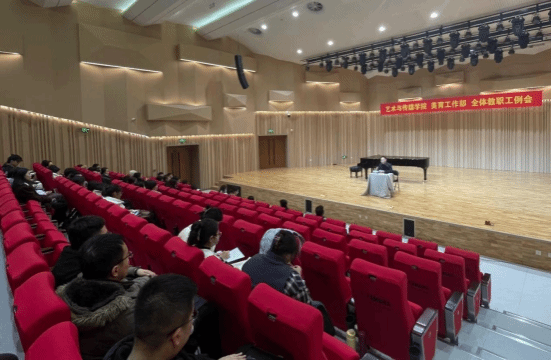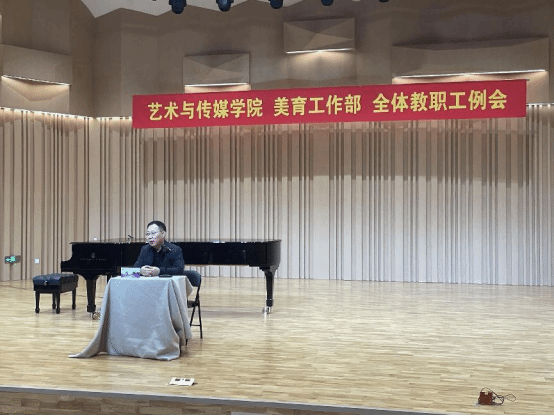 2023年12月29日下午14:00,艺术与传媒学院在音乐厅召开学院例会,院长陈辉、副院长李罡、张会改、书记付华轩及全体教师参加本次会议。