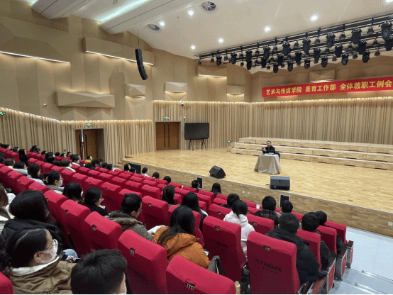 2024年2月25日下午15:00艺术与传媒学院、美育工作部在音乐厅召开全体教职工例会。此次会议由院长陈辉、副院长李罡、张会改、李江涛、书记付华轩等领导班子及全体教师参加本次会议。