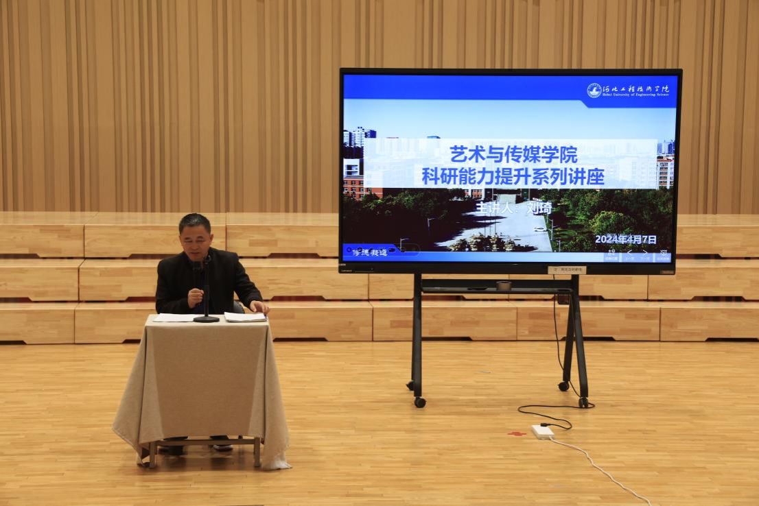 在本次活动中,荣幸邀请到了河北省广播电视研究室主任刘琦教授作为主讲嘉宾。刘琦教授以其深厚的学术造诣和丰富的实践经验,为师生们带来了一场精彩的科研能力提升讲座。在讲座中,刘琦教授深入浅出地分享了他在科研领域的宝贵经验和独到见解,为在座的师生们指明了提升科研实力的方向和方法,激发了大家对科研工作的热情和探索欲望,学院领导班子成员及全体教师参加。