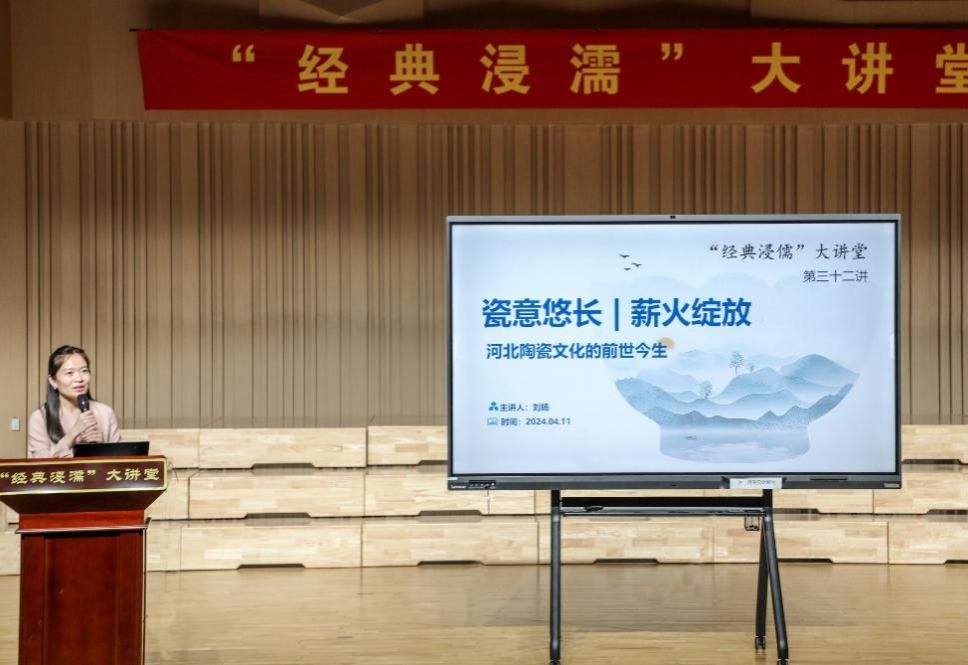 中国是世界著名的陶瓷古国。早在八千年前的新石器时代,我国的先民就已经会制造和使用陶器,瓷器又是我国古代劳动人民的一项伟大发明。为了增强师生对陶瓷文化的保护与传承意识,4月11日晚七点,艺术与传媒学院“经典浸儒”大讲堂系列活动第三十二讲—瓷意悠长 薪火绽放在学校音乐厅举办。本次大讲堂由学院视觉传达设计系教师刘扬担任主讲人。