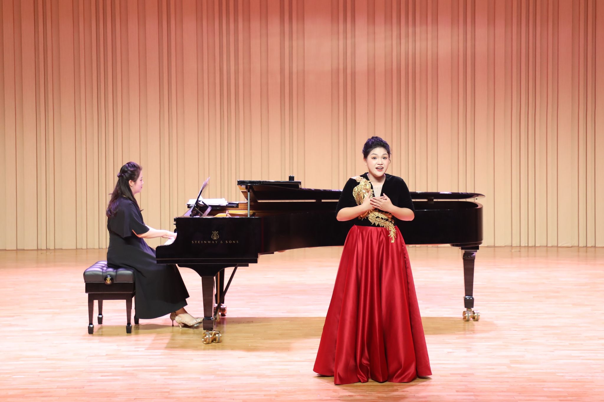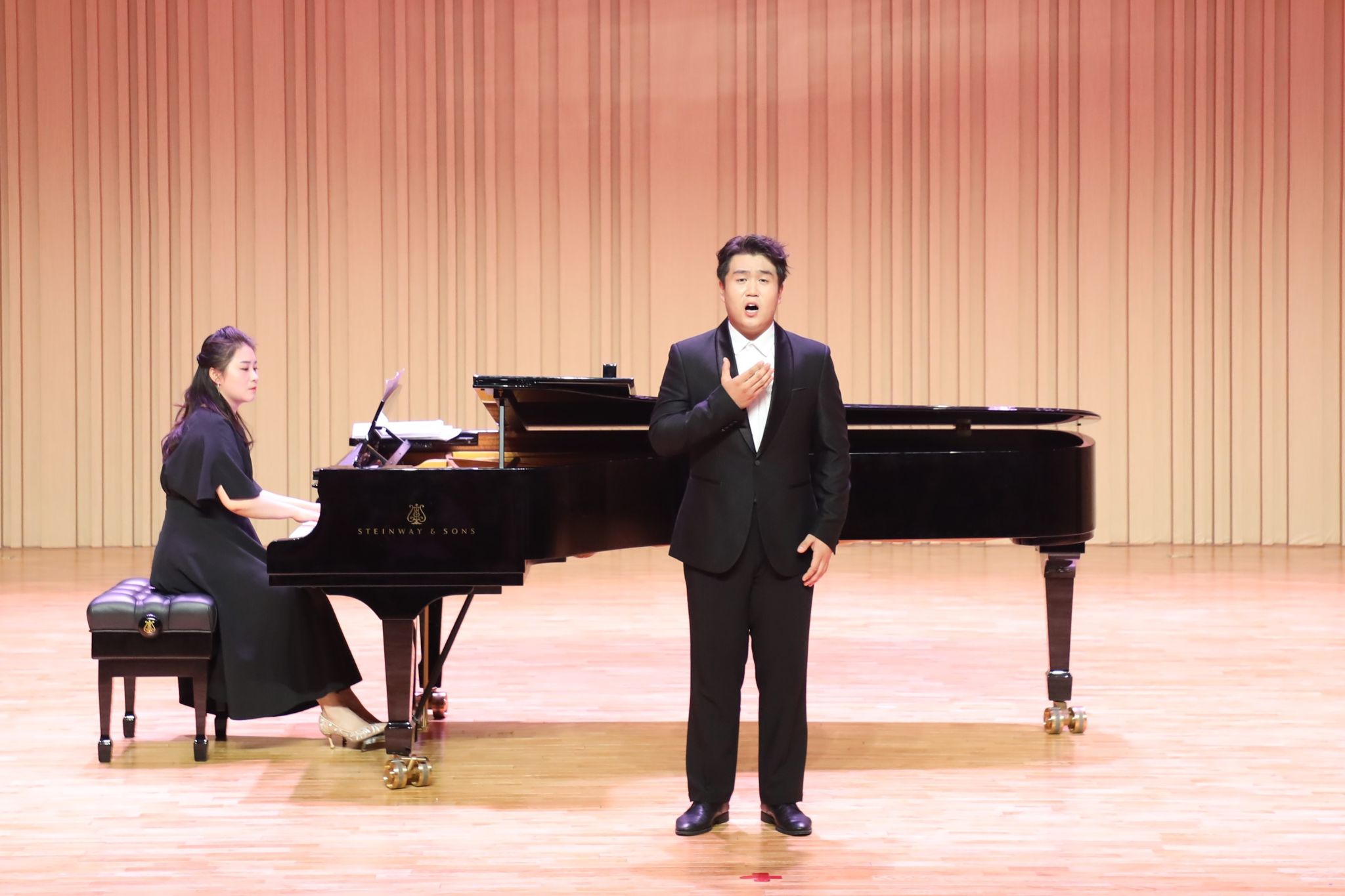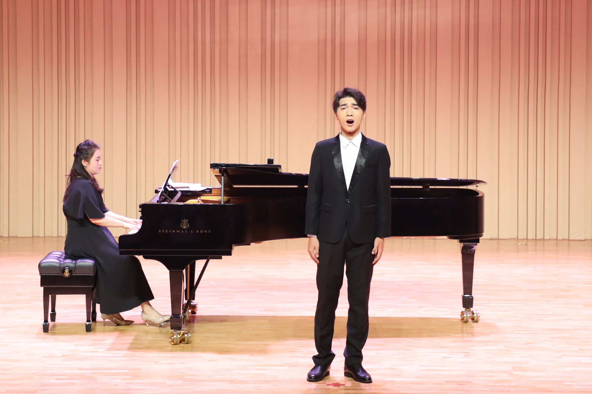 2021级学生王正阳带来的两首独唱作品《我的灵魂随风飘扬》和《望乡词》,《我的灵魂随风飘扬》这是一首韩国艺术歌曲,作品讲述是离世的故人对生活在现实中的爱人说道:“我,并不是离开,而是在这自然的风中一直停留在你身边”。爱的灵魂随风飘扬,悲伤和思念在一起的某一天,会不会成为充满安慰和爱的、美好的一天呢;《望乡词》是一首艺术性极强的中国艺术歌曲。作品以如泣如诉的曲风和真挚的词风,将两者相结合而形成的具有家国情怀的作品。