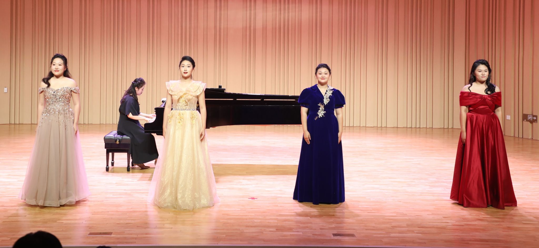 2021级学生杨颖燕带来的独唱《月儿落西下》,这是一首湖北十堰向坝民歌,由青年钢琴家何嘉炜改编,作品极为婉转动听,秋季雨夜,姑娘思念情郎,书信寄相思,景象尤为恬美,整首作品把女孩思念情郎的娇羞、美好演绎的淋漓尽致。