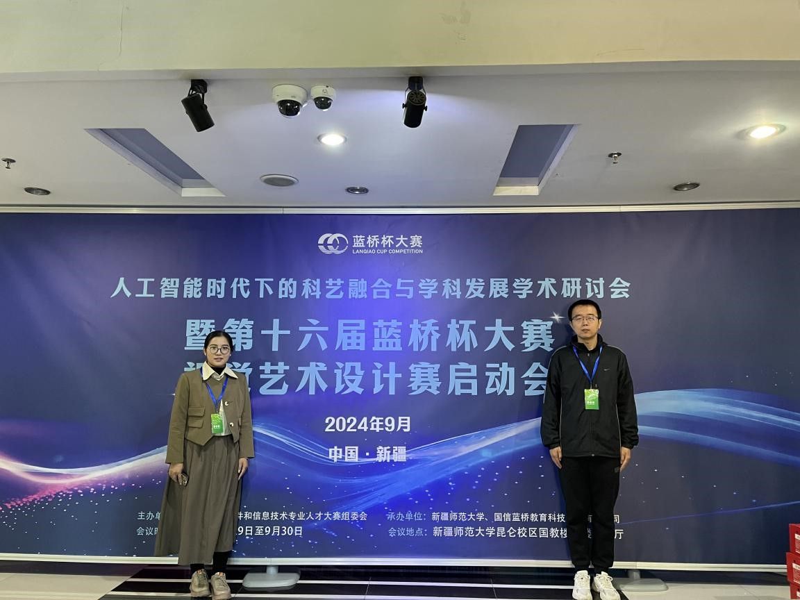 在信息技术、人工智能技术加速迭代背景下,艺术与传媒学院教师于9月28日至30日组织教师参加了由蓝桥杯全国软件和信息技术专业人才大赛组委会主办,新疆师范大学、国信蓝桥教育科技股份有限公司承办的研讨会。来自中国传媒大学、广州美术学院、陕西科技大学、东华大学、苏州大学、鲁迅美术学院等高校、蓝桥杯大赛组委会、疆内兄弟院校的100多位专家学者出席了开幕式。