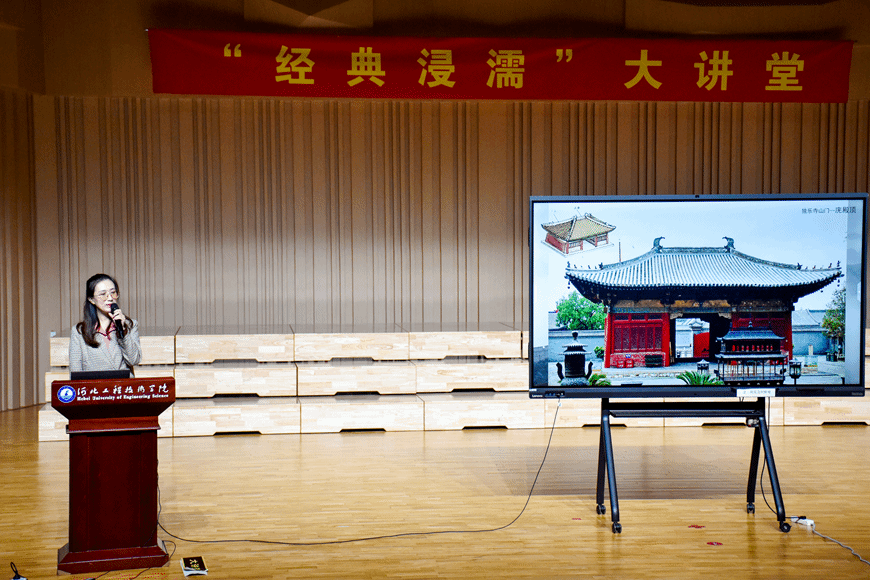 为深入传承与弘扬中国古木建筑这一珍贵的文化遗产,领略其蕴含的传统美学价值,学习梁思成与林徽因夫妇所展现的大国工匠精神,以及古建在文化传承与创新中的独特作用,艺术与传媒学院于10月15日晚,在校音乐厅举办“经典浸濡”大讲堂系列活动第四十五讲——“古木华构,艺韵千秋”:梁思成与林徽因的建筑文化探索之旅。本次活动由环境设计专业专任教师员少婷主讲,她以其深厚的环境艺术文化造诣和独特的学术视角,为在场的师生们带来了一场内容丰富、见解独到的知识分享,赢得了在场观众的广泛赞誉。