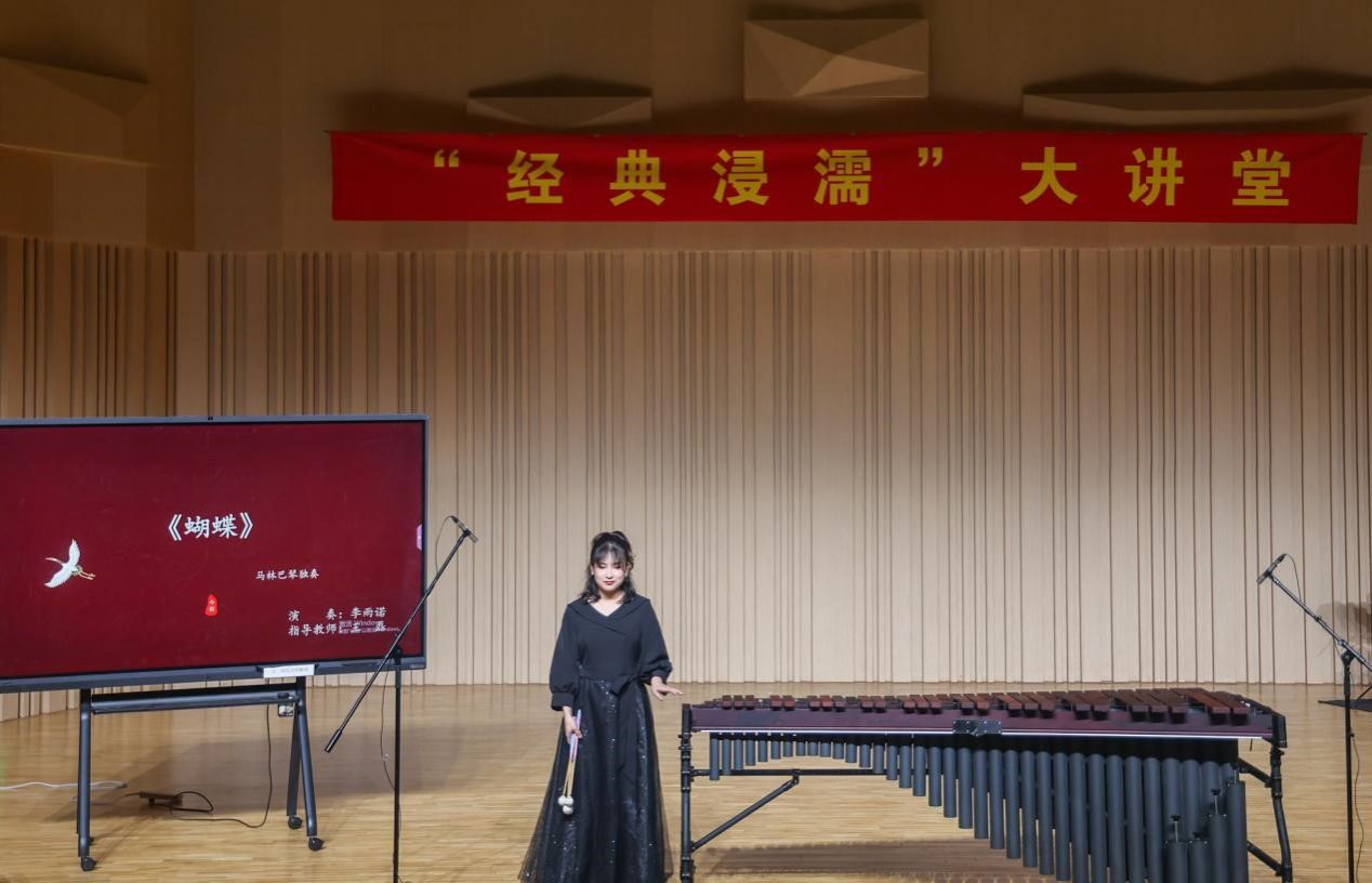 由2023级音乐表演(器乐方向)1班李雨诺带来的马林巴曲目《蝴蝶》,展现了春暖花开,蝴蝶破茧而出,与世界共舞的场景,诉说着生命的绚烂与多彩。