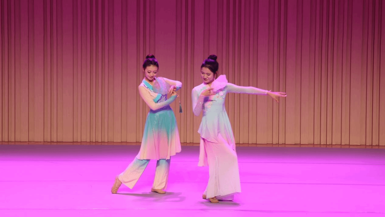 “秋收”在第三部分同学展示了《海阳秧歌王大娘》《织织绣》《爱莲说》《俏弯弯》《扇骨》《林涧》《临湖踏青》《喜上眉梢》《忆梦阑珊》《牧民的喜悦》,这些舞蹈不仅展示了同学们精湛的舞技,更体现了他们在舞蹈艺术上的深厚积淀与收获。