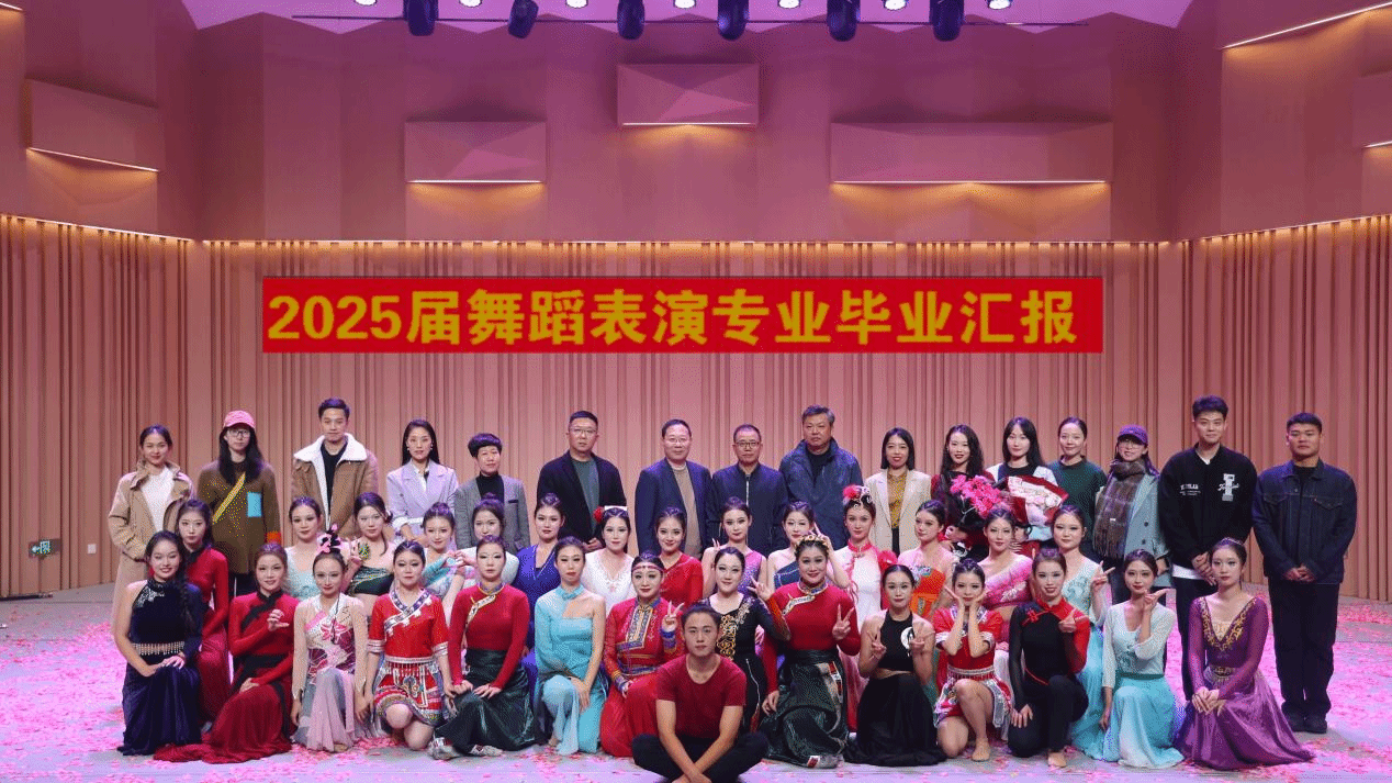 汇报最后伴随着《若你决定灿烂,山无遮,海无拦》全体演员上台谢幕并与领导老师们合影留念。人生的序章,始于初秋,从远方而来,跨越山海,奔赴下一场诗与远方;艺术与传媒学院2021级舞蹈表演一班毕业汇报“四时人生”圆满结束。这一刻,不仅是对同学们四年学习成果的肯定,更是他们人生新阶段的起点。愿他们未来前程似锦,无论走到哪里,都能带着这份对舞蹈艺术的热爱与执着,继续前行。