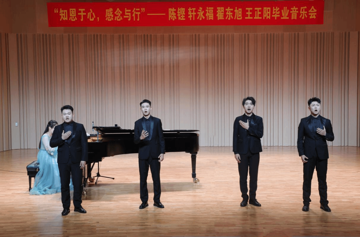 12月25日晚19时,“知恩于心 感念与行”——陈铿、轩永福、翟东旭、王正阳毕业音乐会在学院音乐厅举行,音乐会由声乐歌剧系学生张学娣担任主持人,艺术指导李缘梦。