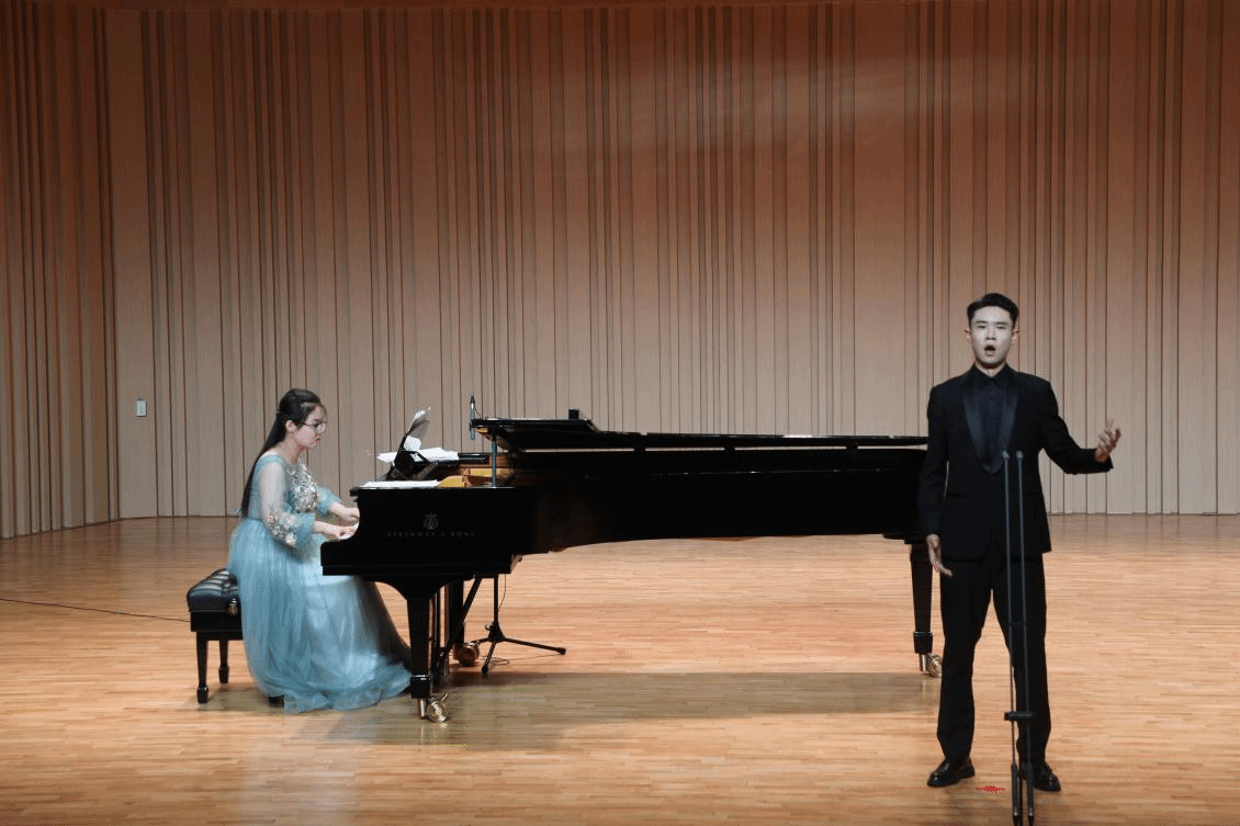 轩永福在歌剧选段《我的爱人你可听见》中展现了彭政委的坚强性格和坚定信念;王正阳则带来了古诗词艺术歌曲《春花秋月何时了》,他通过歌声哀叹与反思了李煜的一生;翟东旭、轩永福两位同学则携手演绎了《海恋》,通过描写大海抒发个人感情,进一步表达对祖国的爱戴和对恋人的思念之情。