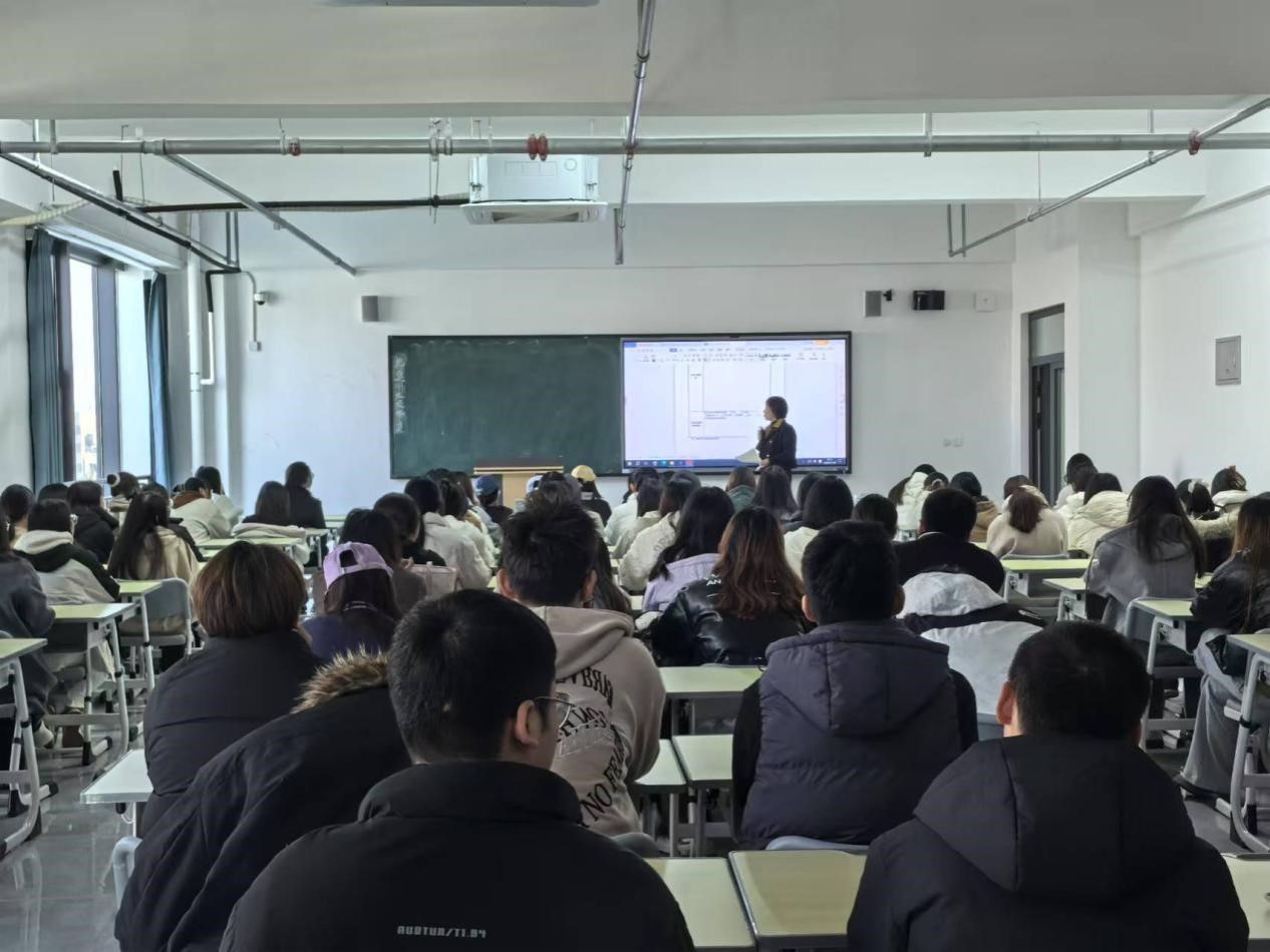 孙妍主任鼓励同学们要珍惜实习机会,勇于挑战自我,不断积累经验,为未来的职业发展做好充分准备。孙妍主任具体的从实习单位的选择、实习期间的注意事项以及实习报告的撰写等方面进行了详细讲解。她强调了实习过程中的安全意识和团队协作精神,提醒同学们要时刻保持谦虚谨慎的态度,虚心向经验丰富的同事学习。
